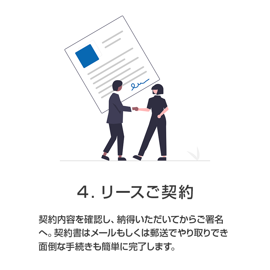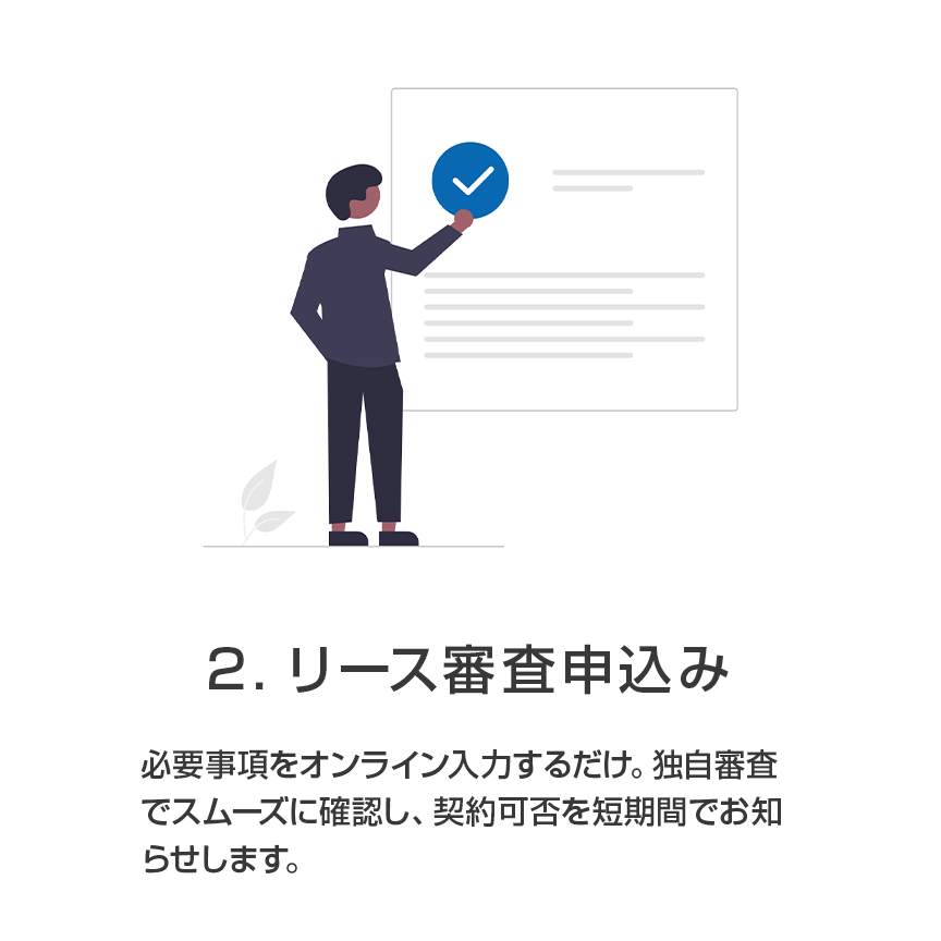 大手リース会社で審査に落ちてしまった方でも、当社独自の審査基準で再チャレンジ可能。過去に審査が不安だった方でも契約できるチャンスがあります。
